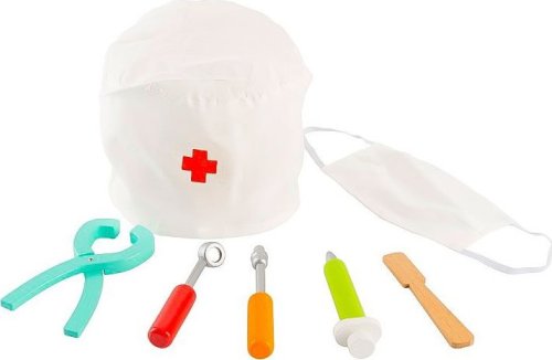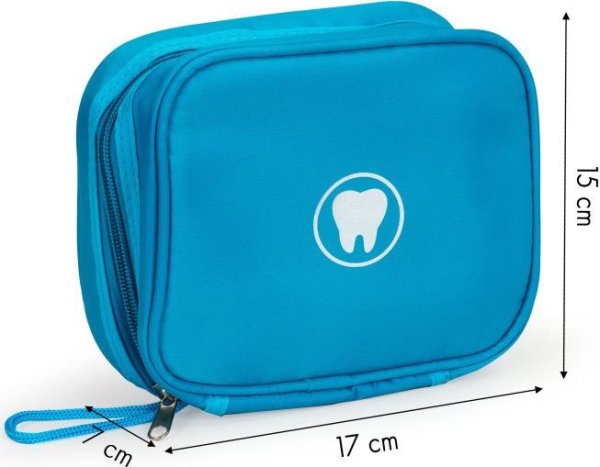 Sada obsahuje: 5 rôznych dentálnych nástrojov, čiapku a rúšku. Rozmery taštičky: 17 x 7 x 15 cm Spĺňa normu EN71 .