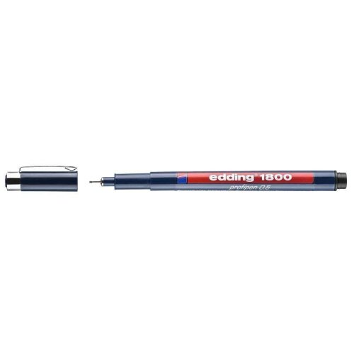 Popisovač EDDING 1800, čierny so šírkou hrotu 0,5 mm má veľmi jemný hrot pre vynikajúce výsledky. Na písanie a skicovanie, napr. na prácu s technickou dokumentáciou. Použite ho ale aj na Vaše tvorenie vo voľnom čase. Pigmentový atrament, ktorý vyniká najmä pre svoju stálofarebnosť a vysokú trvanlivosť. Odolný voči rozmazaniu a vode. Vďaka špeciálnemu atramentu nedochádza k presakovaniu cez papier. Rýchloschnúca a neutrálna vôňa. Má plastový okrúhly hrot s kovovým rámčekom. Viečko fixky má klip na praktické zachytenie, napr. k odevu alebo notesu.