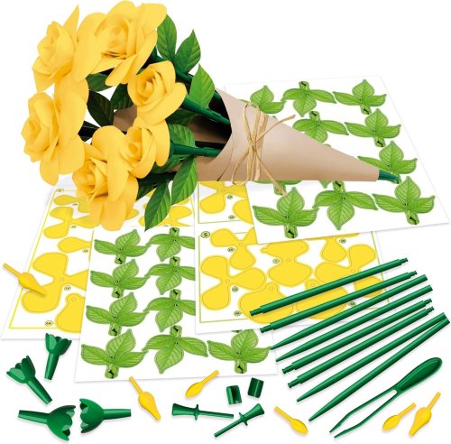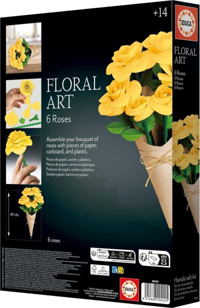 6 žltých ruží na zostavenie krásnej kytice. 3D puzzle - zostavte svoju vlastnú kyticu v troch rozmeroch. Jednoduché zostavenie - bez nutnosti lepidla či nožníc - všetky diely sú predpripravené. Štýlová dekorácia - výsledný produkt skvele doplní váš domov alebo poslúži ako originálny darček. Ekologické materiály - použitý papier a kartón pochádza z udržateľných zdrojov.