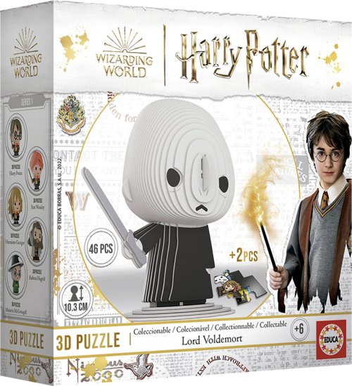 Poskladajte 3D puzzle zo zberateľskej série Harry Potter, ktorá obsahuje celkom 6 rôznych postáv hlavných hrdinov filmu. Každý model navyše obsahuje dva puzzle dieliky 12dielneho obrázku, ktorý zostavíte, pokiaľ nazbierate celú kolekciu.