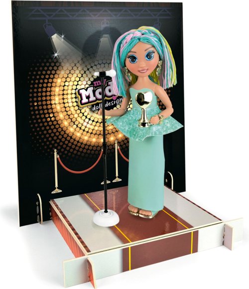 Balenie obsahuje: zostaviteľnú bábiku, látku s predtlačenými strihmi 61x32 cm, módne doplnky, bavlnky na vlasy, dierovač odevov, príslušenstvo, obrázkový návod. Kreatívne sady My Model Doll Design sú rozdelené podľa rôznych tém: Módny ateliér, Oslava, Popová hviezda, Glam Chic, Svet fantázie a Ležérny štýl.