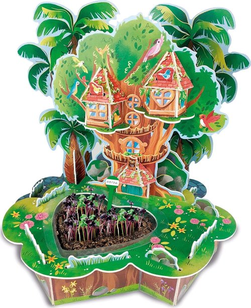 2v1 - postav dom na strome a staraj sa o záhradku súčasťou výrobku sú semienka (vzklíčia počas 5-10 dní) podpora vzťahu detí k prírode a environmentálnemu povedomiu učia deti starostlivosť o rastliny - je potrebné zalievať pri sledovaní rastu záhradky môžete vytvárať a predstavovať si príbehy netradičná izbová dekorácia