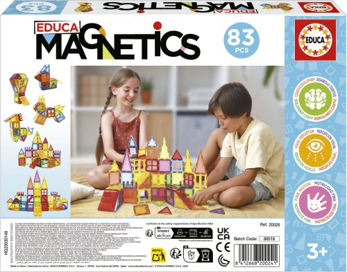 Predstav si - postáv - uč sa! Kreatívna magnetická stavebnica Magnetics od španielskeho výrobcu EDUCA umožňuje zostavovať veľké množstvo trojrozmerných objektov pomocou dvojrozmerných plastových mnohouholníkov.