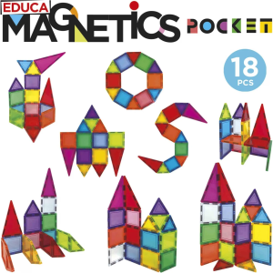 Predstav si - postáv - uč sa! Kreatívna magnetická stavebnica Magnetics od španielskeho výrobcu EDUCA umožňuje zostavovať veľké množstvo trojrozmerných objektov pomocou dvojrozmerných plastových mnohouholníkov. Vlastnosti: