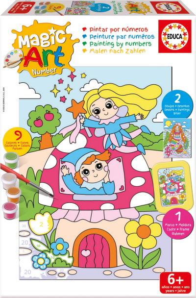 Postupne vyfarbujte jednotlivé časti podľa návodu (každé číslo na plátne zodpovedá jednej konkrétnej farbe). Kreatívna aktivita, ktorá pomáha rozvíjať sústredenie, koordináciu, rozpoznávanie farieb a to všetko zábavnou formou. Balenie obsahuje: 2 obrázky o rozmere 20,5 x 15,5 cm s očíslovanými časťami, farebnú predlohu, sadu 9 farieb so stojanom, plastový rámček na postavenie a štetec.