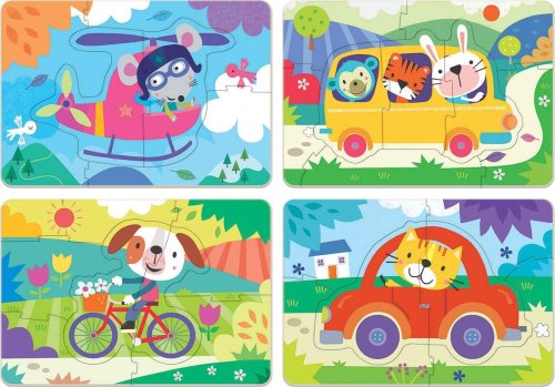 Progresívne detské puzzle od španielskej firmy EDUCA s rôznou obtiažnosťou, ktoré deti zabavia na dlhšiu dobu. Štyri samostatné puzzle o veľkosti 24 x 16 cm, ale s rôznym počtom dielikov (od 5 do 8), postupne vedú k zdokonaľovaniu dieťaťa pri skladaní a zvyšovaní obtiažnosti. Z každého motívu môžete tiež samostatne vybrať a poskladať celý dopravný prostriedok. Rozmer zloženého puzzle cca 24 x 16 cm