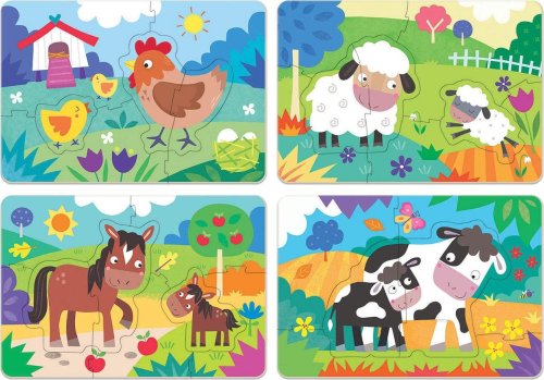 Progresívne detské puzzle od španielskej firmy EDUCA s rôznou obtiažnosťou, ktoré deti zabavia na dlhšiu dobu. Štyri samostatné puzzle o veľkosti 24 x 16 cm, ale s rôznym počtom dielikov (od 5 do 8), postupne vedú k zdokonaľovaniu dieťaťa pri skladaní a zvyšovaní obtiažnosti. Z každého motívu môžete tiež samostatne vybrať a poskladať celé zvieratká. Rozmer zloženého puzzle cca 24 x 16 cm