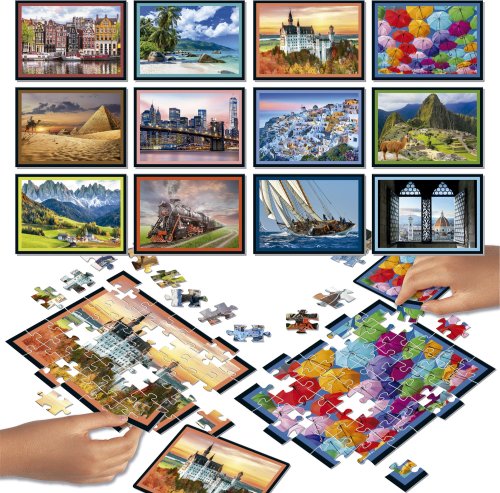 12 puzzle, každé s 42 dielikmi, 12 predlohových kartičiek.