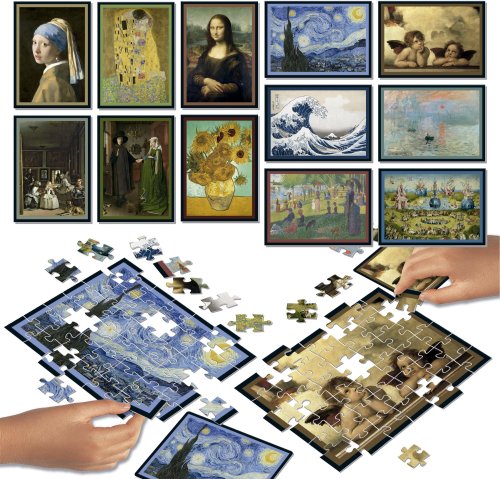 12 puzzle, každé s 42 dielikmi, 12 predlohových kartičiek.