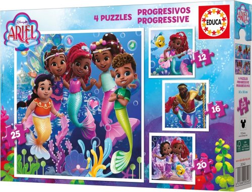 Súbor štyroch progresívnych puzzle EDUCA - s rôznou obtiažnosťou a rôzne veľkými dielikmi. Rozmer zloženého puzzle cca 16 x 16 cm