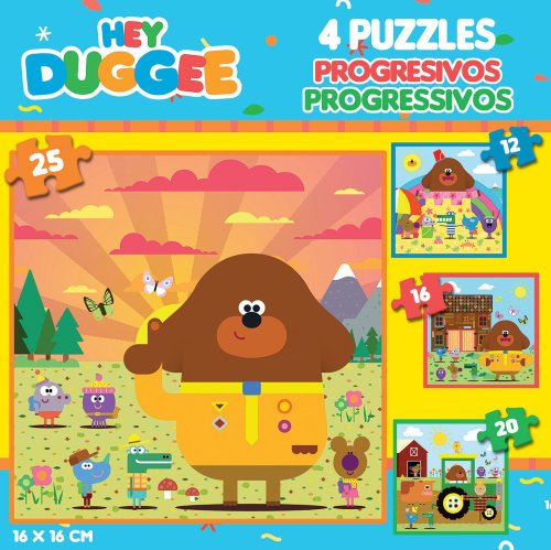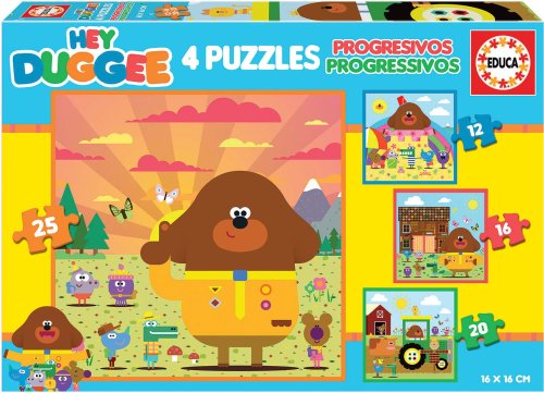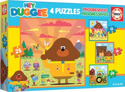 Progresívne puzzle s rôznou obtiažnosťou - 4 puzzle s 12 - 25 dielikmi, s vyšším počtom dielikov sa zmenšuje ich veľkosť. Rozmer zloženého puzzle cca 16 x 16 cm