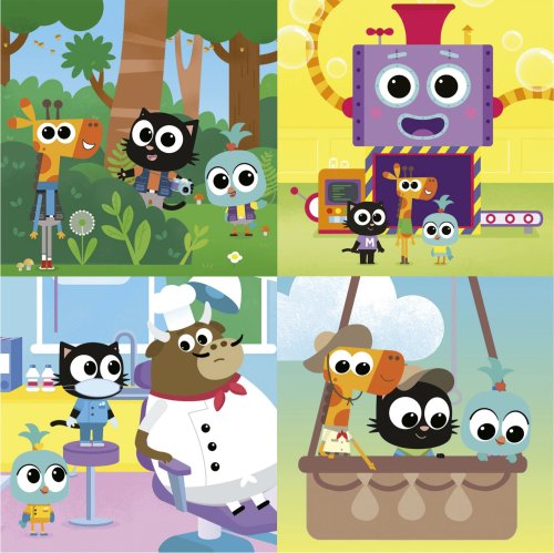 Súbor štyroch progresívnych puzzle EDUCA - s rôznou obtiažnosťou a rôzne veľkými dielikmi. Rozmer zloženého puzzle cca 16 x 16 cm