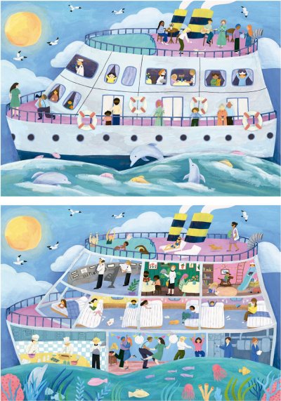 EDUCA Puzzle Outside,Inside Výletná loď 2x100 dielikov