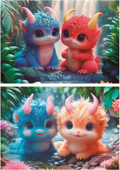Balenie obsahuje dve puzzle s rovnakým počtom dielikov a rovnakým rozmerom. Rozmer zloženého puzzle cca 40 x 28 cm
