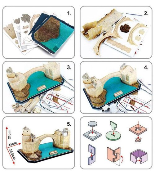3D puzzle z 3mm silnej peny potiahnuté laminovaným potlačeným papierom. Hotové modely značky Educator sa stanú štýlovým doplnkom každého interiéru. Dieliky sa k sebe zostavujú pomocou návodu bez použitia lepidla a nožníc - predražené dieliky iba jednoducho vylomíte z archu. Veľkosť modelu: 41 x 24,5 x 21 cm Obtiažnosť 5 , 7 Orientačný čas na zostavenie: 60 - 100 minút Rozmer zloženého puzzle cca 41 x 24,5 x 21 cm
