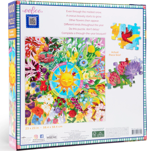Vyrobené z 90% recyklovaného šedého kartónu a tlačené atramentmi na rastlinnej báze. Puzzle od amerického výrobcu EEBOO. Rozmer zloženého puzzle cca 58,4 x 58,4 cm
