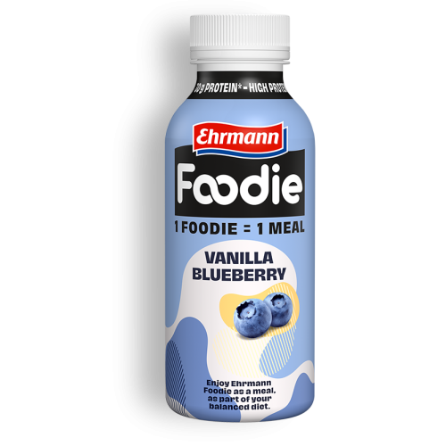 1 Foodie = 1 jedlo. Ehrmann Foodie je lahodné jedlo v podobe nápoja s dôležitými živinami, ktoré vaše telo potrebuje. Fľaša s obsahom 400 ml obsahuje 30 g bielkovín, neobsahuje laktózu, lepok a pridané cukry*.