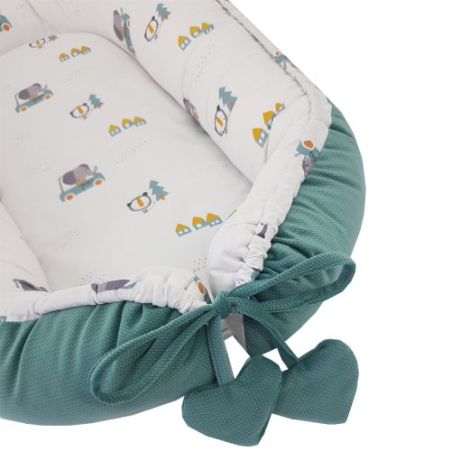 Multifunkčné hniezdo pre dieťa s okúzľujúcim vzhľadom poskytuje bezpečnosť a pohodlie pre spiace deti. Skvelá alternatíva k tradičným perinkám a zavinovačkám. Praktickosť hniezda znamená, že môže byť použitý aj ako podložka na hranie. Hniezdo má vysoké okraje, ktoré uľahčujú položenie dieťaťa na boku, čo je dôležité najmä, keď dieťa má reflux.