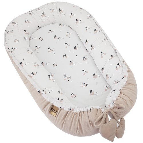 Multifunkčné hniezdo pre dieťa s okúzľujúcim vzhľadom poskytuje bezpečnosť a pohodlie pre spiace deti. Skvelá alternatíva k tradičným perinkám a zavinovačkám. Praktickosť hniezda znamená, že môže byť použitý aj ako podložka na hranie. Hniezdo má vysoké okraje, ktoré uľahčujú položenie dieťaťa na boku, čo je dôležité najmä, keď dieťa má reflux.