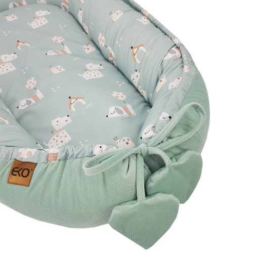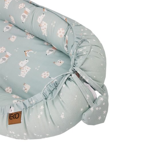 Multifunkčné hniezdo pre dieťa s okúzľujúcim vzhľadom poskytuje bezpečnosť a pohodlie pre spiace deti. Skvelá alternatíva k tradičným perinkám a zavinovačkám. Praktickosť hniezda znamená, že môže byť použitý aj ako podložka na hranie. Hniezdo má vysoké okraje, ktoré uľahčujú položenie dieťaťa na boku, čo je dôležité najmä, keď dieťa má reflux.