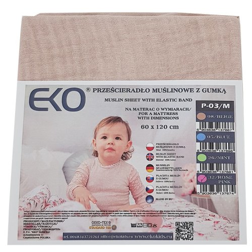 Mušelínová napínacia plachta s gumou vyrobená zo 100% bavlny.
