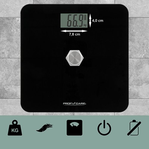 Kinetická osobná váha ProfiCare® ponúka presné merania bez použitia batérií tým, že generuje vlastnú energiu krátkym stlačením tlačidla napájania. Táto bezbatériová osobná váha je vďaka svojej samogenerujúcej energii šetrná a udržateľná k životnému prostrediu. Extra veľký, kvalitný sklenený povrch (cca 31 x 31 cm) je nielen elegantný, ale aj odolný proti poškriabaniu a ľahko sa čistí a zaisťuje dlhú životnosť vašej váhy. Extra veľký LCD displej zaisťuje optimálnu čitateľnosť. Môžete si vybrať medzi jednotkami merania kg alebo lb a využiť rozsah merania 5–180 kg v krokoch po 100 g. Automatické vypnutie, indikátory nízkej energie a preťaženia a protišmykové nožičky zaisťujú bezpečné a jednoduché použitie váhy. Rozsah merania je 5-180 kg, kedy meria po 100 g. Jej povrch (hygienický, odolný proti škrabancom) vyžaduje len minimálnu starostlivosť a stačí ju raz za čas utrieť od prachu. Rozmery plochy: cca 31 x 31 cm. Jej spodná časť je vybavená protišmykovými nožičkami, čím je zabránené nežiaducemu pohybu po podlahe. Automatické vypnutie po meraní šetrí energiu.