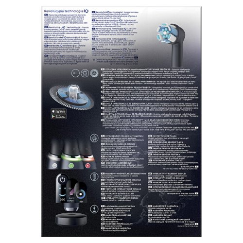 Kefka iO v čiernej farbe je určená pre citlivé zuby a ďasná. Kombinuje ikonickú okrúhlu kefkovú hlavu Oral-B s unikátnymi jemnými mikrovibráciami, takže umožňuje dosiahnuť 100% zdravších ďasien už za jeden týždeň ako bežná manuálna zubná kefka. Šikovný senzor tlaku signalizuje pomocou červenej, bielej alebo zelenej farby kontrolky, či pri čistení tlačíte príliš, málo alebo správne. Interaktívny farebný displej OLED ukazuje dôležité informácie, vrátane režimov čistenia a pripomienky výmeny kefkovej hlavy, pozdravu, keď ho zapnete, a úsmevu za dobre odvedenú prácu. Magnetická rýchlonabíjačka zaisťuje rýchle nabitie asi za 3 hodiny. Vylepšený inteligentný tlakový senzor signalizuje červenou, bielou alebo zelenou farbou, aby vás upozornil, či kefujete príliš silno, príliš jemne alebo so správnym tlakom. Sedem šikovných režimov na čistenie na mieru: na každodenné čistenie, jemný, starostlivosť o ďasná, intenzívne čistenie, bieliaci, super jemný, čistenie jazyka. Funkcia 3D mapovania zubov s umelou inteligenciou sleduje, ako si čistíte predné, horné a zadné plochy zubov a vedie vás tak, aby bolo čistenie čo najdôkladnejšie. Pre vaše najlepšie výsledky a zážitok z čistenia si stiahnite aplikáciu Oral-B, pripojte k nej kefku a pravidelne ju aktualizujte.