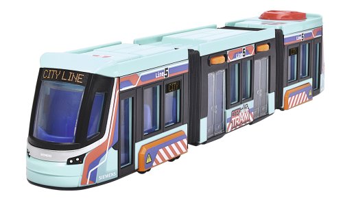 Električka Siemens Avenio na voľnobeh, otváracie dvere, otáčaním kolieska na streche sa ovládajú predné kolesá. Dĺžka 41,5 cm.
