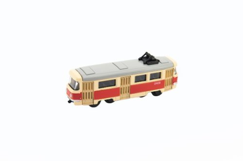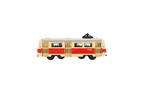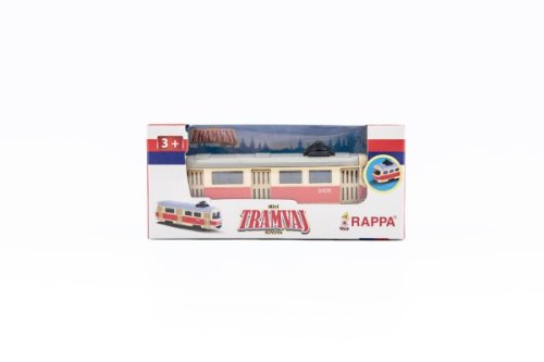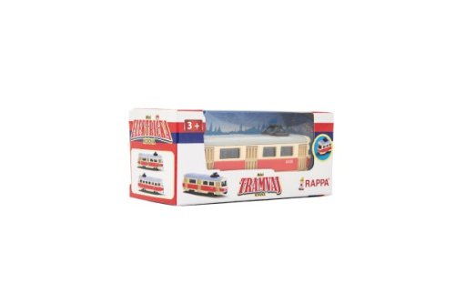 Mini kovová električka T3 jazdí na voľný chod a jej dĺžka je 8,5 cm.