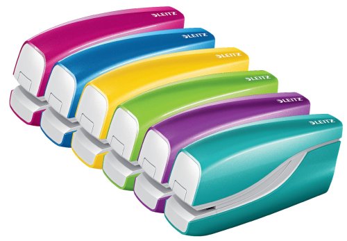 • Zošívačka v štýlových farbách ľahko ovládateľná jednou rukou