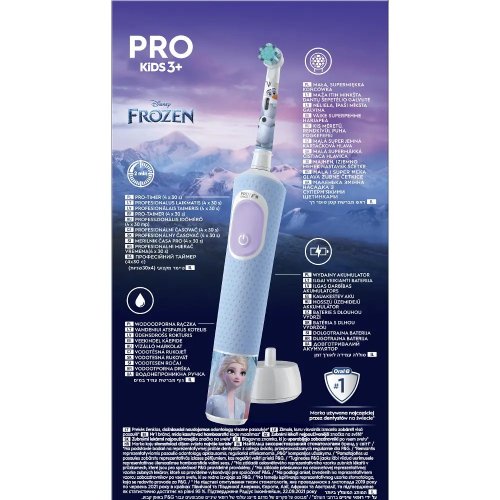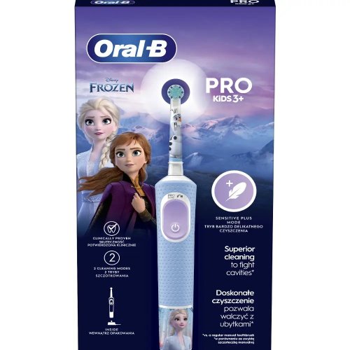 Dajte svojim deťom tú najlepšiu zubnú starostlivosť s elektrickou kefkou Oral-B Vitality Pro Kids Frozen . Táto špeciálne navrhnutá detská zubná kefka kombinuje účinné čistenie s rozprávkovým dizajnom, ktorý deti milujú. Vďaka oscilačno-rotačnej technológii zaisťuje šetrné a dôkladné odstránenie zubného povlaku, zatiaľ čo motivuje deti k pravidelnej ústnej hygiene prostredníctvom interaktívnej aplikácie a samolepiek.