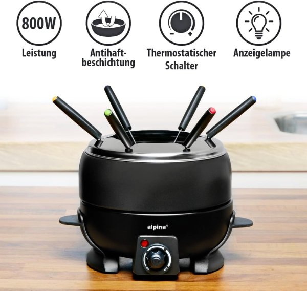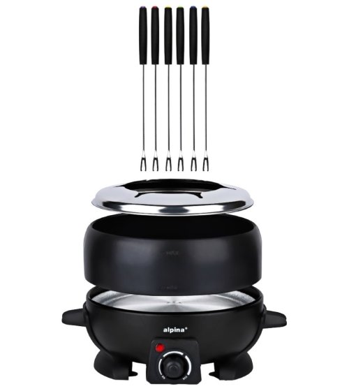 Premeňte svoje stretnutie s rodinou a priateľmi na nezabudnuteľný zážitok s elektrickou sadou na fondue Alpina . Tento výkonný a všestranný fondue set vám umožní ľahko a rýchlo rozpustiť syr, čokoládu i omáčky alebo rozohriať olej , vďaka čomu sa hodí na každú príležitosť – od romantickej večere až po zábavné párty! Elektrické fondue je najpohodlnejší a najrýchlejší prístroj na prípravu fondue. Nemusíte čakať , kým sa rozpáli horľavá pasta alebo prikladať pod fondue nekonečné množstvo sviečok.