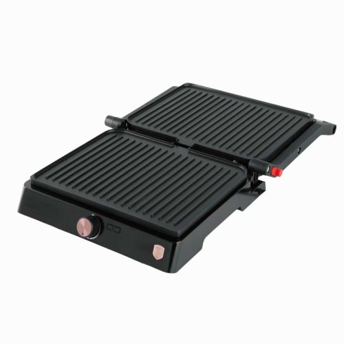 - Príkon: 2200 W- Napätie: 220-240 V - NON-STICK povlak na doske- Veľkosť taniera: 29 * 23 cm- Farba: čierno-ružovo zlatá- 2 v 1 - otváranie v rozsahu 105 ° a 180 ° - Nastaviteľný termostat-