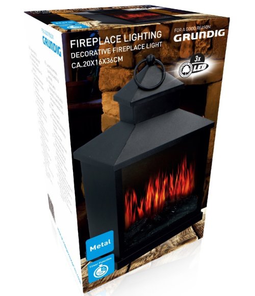 Štýlová LED dekoratívna lampáš vyrobená z kovu s klamne skutočnou krbovou atmosférou pre dekoráciu vášho domova, kancelárie atď. Lucerna má na jednej strane priehľadové okienko so simulovanými plameňmi . Voliteľná funkcia časovača: Pri aktivácii sa osvetlenie automaticky zapne na 6 hodín a potom sa opäť vypne .Čierna farbaPrevádzkový režim: 3 x AA batérieRozmery: cca 20 x 36 x 16 cmMateriál: kovZnačka: Grundig