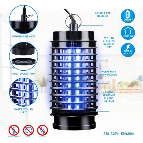 Zaistite si pokojné prostredie bez obtiažneho hmyzu s týmto účinným LED lapačom. Vďaka pokrytiu až 25 m2 spoľahlivo ochráni vašu domácnosť, kanceláriu či chatu. Moderná LED technológia priťahuje hmyz ticho a bez chemikálií, zatiaľ čo kompaktný dizajn a 1metrový kábel umožňujú ľahké umiestnenie kamkoľvek.