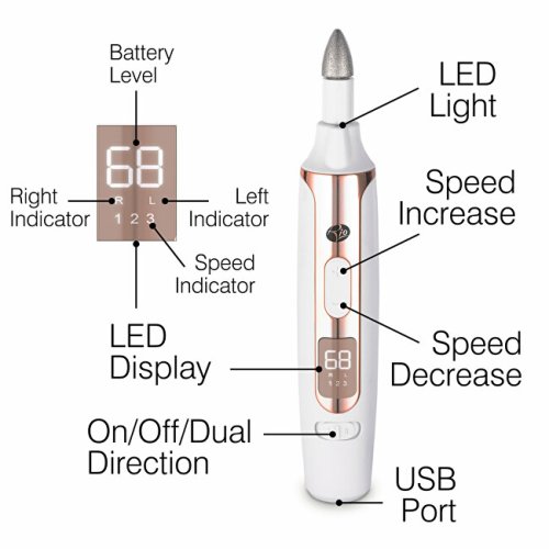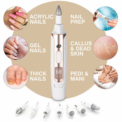 Multifunkčný elektrický pilník ponúka 7 výkonných nástavcov, tri rýchlosti, obojstranný chod a digitálny displej, ktorý poskytuje úplnú kontrolu nad starostlivosťou o vaše nechty. Ideálne na tvarovanie, vyhladzovanie a leštenie prírodných aj umelých nechtov.