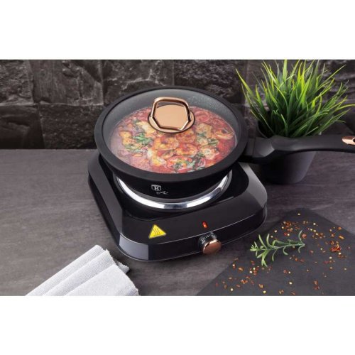 Elektrický varič Black Rose Collection je kompaktný prístroj, vďaka ktorému si uvaríte kdekoľvek je možnosť elektrického pripojenia. Je perfektný na prenos a pohodlne ho môžete vziať na dovolenku, do kempu, na chalupu či ubytovňu. Varič BerlingerHaus má jednu platničku o veľkosti 18,5 cm a je vhodný pre takmer všetky možné typy riadu. Jednoduchá regulácia teploty pomocou gombíka. Akonáhle je varič v prevádzke, informuje o tom svetelná kontrolka.