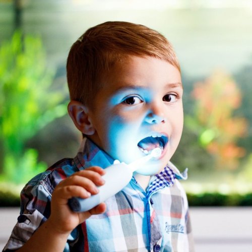 Sonická zubná kefka pre deti v podobe roztomilej žirafky podporujúca návyk správneho čistenia už od útleho veku.