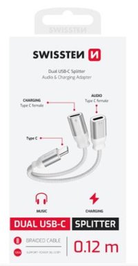 Nabíjací audio adaptér TEXTILE SWISSTEN 73502305 USB C/USB C 0,12 m PN 73502305 Kvalitný a kompaktný adaptér pre nabíjanie a súčasné počúvanie hudby na vašich zariadeniach s USB-C konektorom Adaptér s konektorom …