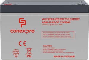 Olovená AGM Deep Cycle batéria Conexpro 12V/80Ah je výkonným zdrojom energie s dlhou životnosťou až 10–12 rokov.