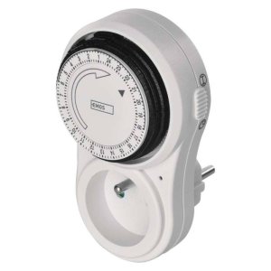 spínač mechanický TF-16 mechanická spínaná zásuvka ~230 V/16 A max 48 spínacích možností za deň možnosť ručného zopnutia predajný obal: 1 ks, blister