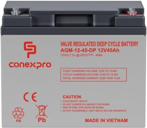Kompaktná bezúdržbová AGM batéria s kapacitou 45 Ah, životnosť až 10–12 rokov pri správnom používaní.