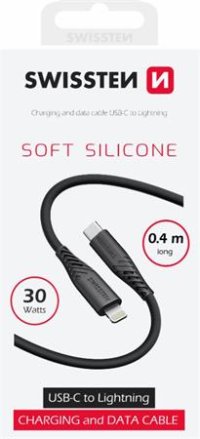 SWISSTEN SOFT SILICONE USB-C na Lightning 40 cm; Dátový a nabíjací USB-C na Lightning kábel podporuje okrem prenosu dát rýchlosťou 480 Mb/s aj nabíjanie prúdom až 3 A a je možné ho využiť aj pre technológiu …