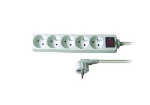 Predlžovací kábel s 5 zásuvkami a vypínačom ON/OFF, dĺžka kábla 5m, zásuvky s detskou poistkou, max. 2300W/10A.