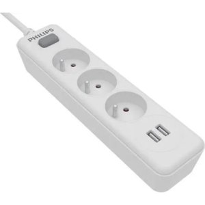 Predlžovací kábel Philips SPN3032WA/60 Klasický predlžovací kábel 3 AC zásuvky 2 USB-A zásuvky Dĺžka kábla 2m Hlavný vypínač napájania Bezpečnostná ochrana - detská uzávierka Biela farba