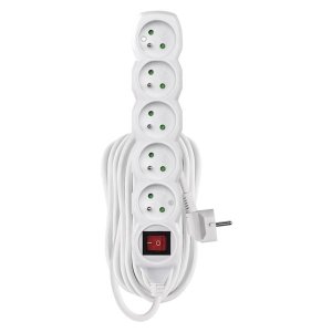Predlžovací prívod, 5 zásuviek, biely, vypínač, dĺžka 3m