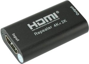 HDMI repeater, opakovač 4K HDMI signálu až do 40m - Zapája sa väčšinou do stredu trasy medzi dva káble, napríklad medzi dva 20m káble, viď príklad zapojenia nižšie, preto konektory repeatera sú female-female …