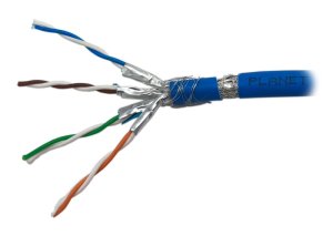 PLANET SFTP LS0H Cat6a 500 m; Kábel kategórie Cat6A, 500 MHz, 4pár, drôt, SFTP, LS0H, každý pár je tienený zvlášť fóliou + celkové opletenie, 500m balenie na drevenom bubne, modrá farba, cena za …