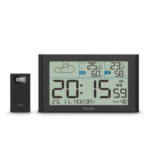 - dvojdielny set: základňa + bezdrôtový senzor; s farebným displejom a intuitívnym ovládaním - pre digitálne zobrazenie vonkajšej a vnútornej teploty a vlhkosti vzduchu, predpovede počasia, fázy mesiaca, dátumu, …