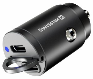 SWISSTEN 20111900; Miniatúrna nabíjačka do auta s dvoma výstupmi USB-C s výkonom až 45 W, ktorá na cestách spoľahlivo nabije akýkoľvek mobilný telefón alebo tablet, a to aj súčasne.